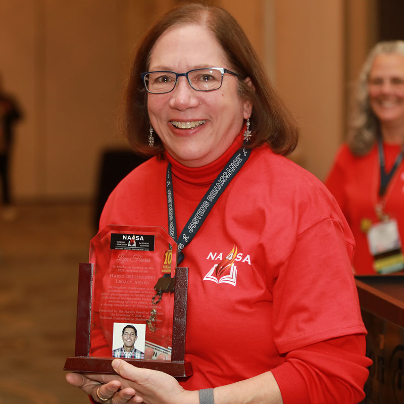 We are honored to present the 2024 Harry Bettencourt Legacy Award to Lyn Fiscus from Virginia, who becomes the fifth Student Activity Professional to receive this honor which carries forward the passion and spirit of Harry Bettencourt.
