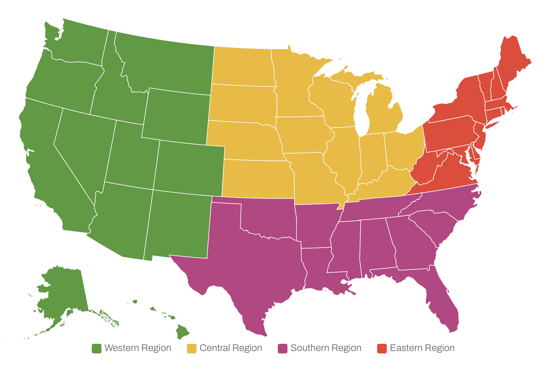There will be ONE Regional Award presented to a nominee from each of four Regions, as defined by the map below: