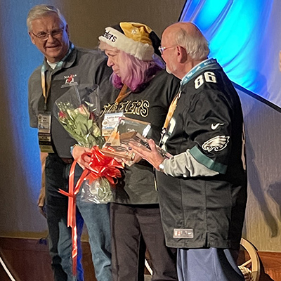 Jim Finnemeyer passed away on April 20, 2023 at the age of 76, after a courageous 18 month long battle with cancer. This battle did not stop Jim from attending and speaking at (see photo above) the 2022 NA4SA National Conference in Boston - a moment that truly captivated and inspired everyone in the room. During the same conference, Jim was also present for the inaugural presentation of the newly created Service Award named for him to long time colleague Kathy Coll, who worked with Jim for over 30 years as his Assistant Executive Director for the Pennsylvania Association of Student Councils and then joined him again to work as Registrar for NA4SA, a position she continues in today.