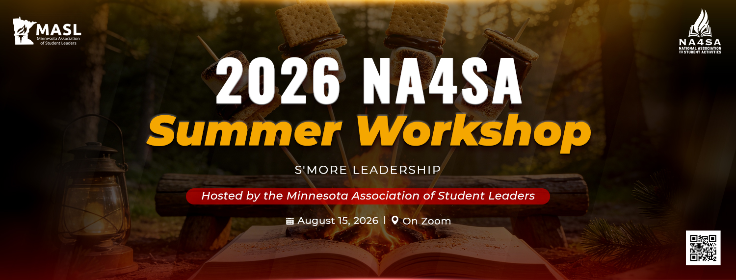 A golden opportunity to build that network and learn some new skills to get the school year off to a good start is the NA4SA Summer Workshop, which will be hosted this year by the Minnesota Association of Student Leaders (MASL) on Saturday August 15, 2026. The theme of this year's Summer Workshop is "S'more Leadership", contributing to the professional growth of Student Activity Professionals from a wide range of backgrounds. Veteran advisors and experts in the field of Student Activities will be sharing some of their resources and ideas that you can bring back, adapt for your own use, and implement on DAY ONE. Our goal is to offer the resources you need to provide a more rewarding leadership experience to your student leaders - and a more rewarding advising experience to YOU!